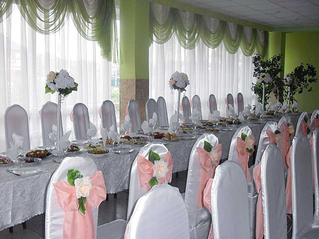 чехлы и цветы на столы для гостей