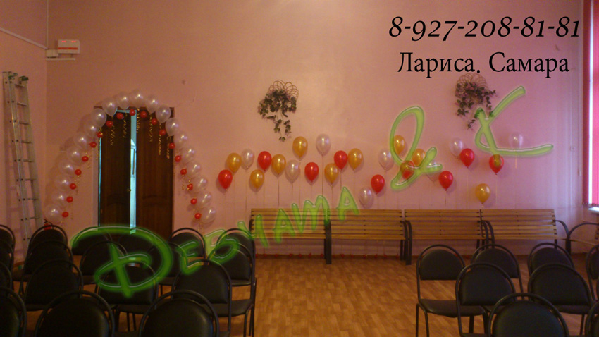 Арка на входе и гелиевые шары для выпускников. Последний звонок